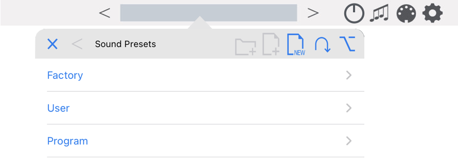 The presets stored in this folder can also be displayed in the preset list of the AUv3 host. On the settings screen, you can choose to display the factory presets or the contents of the program folder.